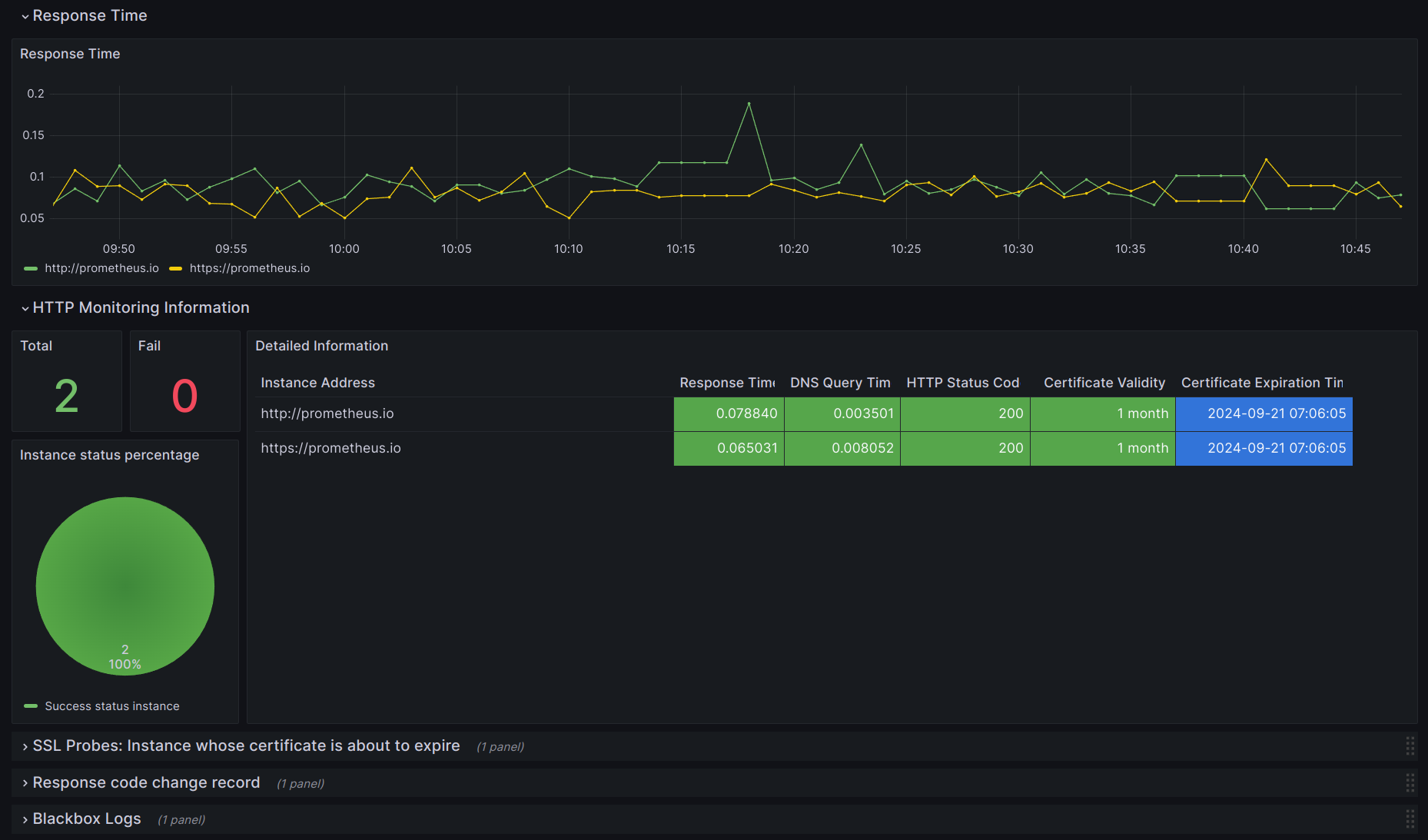 The Blackbox Exporter is a tool that allows for blackbox probing of endpoints over a multitude of protocols, including HTTP, HTTPS, DNS, TCP, ICMP, and gRPC.