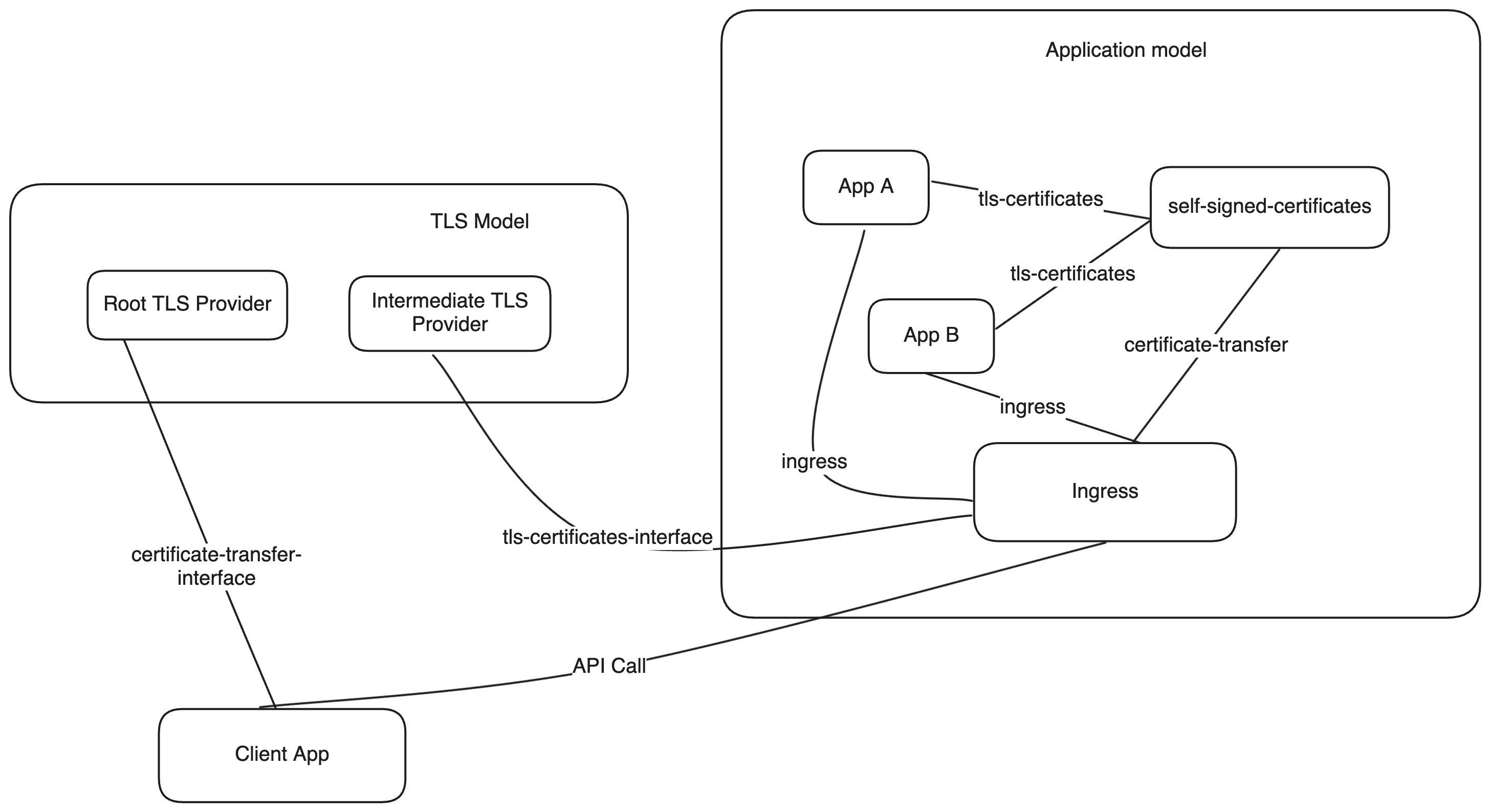 Note: Deploying the TLS provider in a different model is not mandatory. In smaller or simpler setups, the provider and requirer applications can be in the same model.