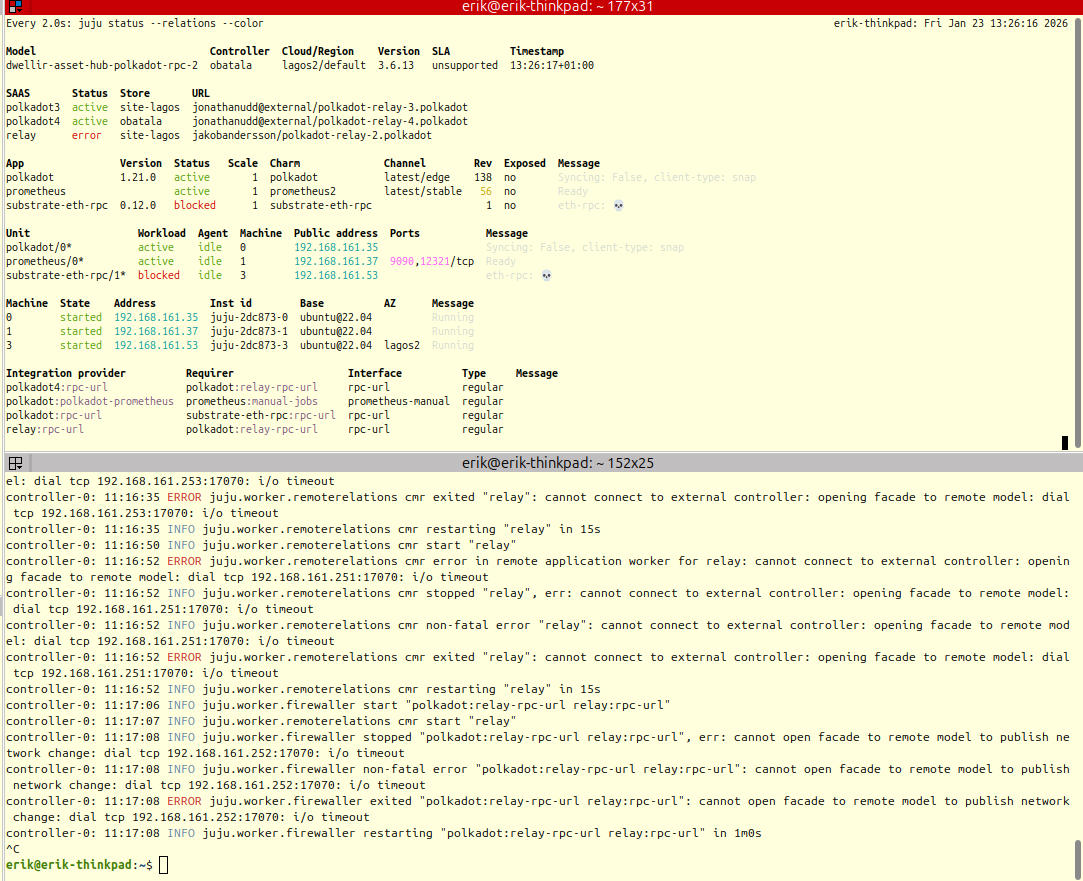 Running: “juju remove-saas relay –force –no-wait” just does nothing and no change in the logs.