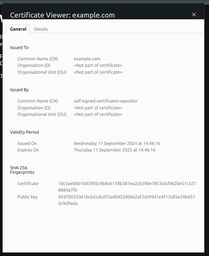 Don’t worry, this message is expected since the certificate we received is self-signed.