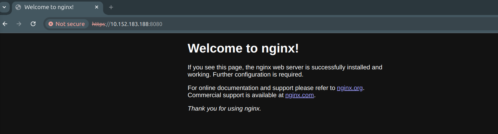 Click on Advanced → Proceed and you should now see the same Nginx page as in step 1.
