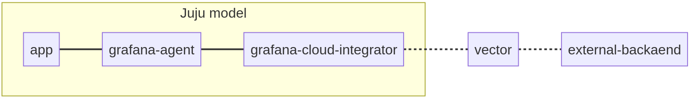 Once that is set up, you’ll simply need to deploy grafana-cloud-integrator, configure the aforementioned loki endpoint in the charm, and relate it to grafana-agent: