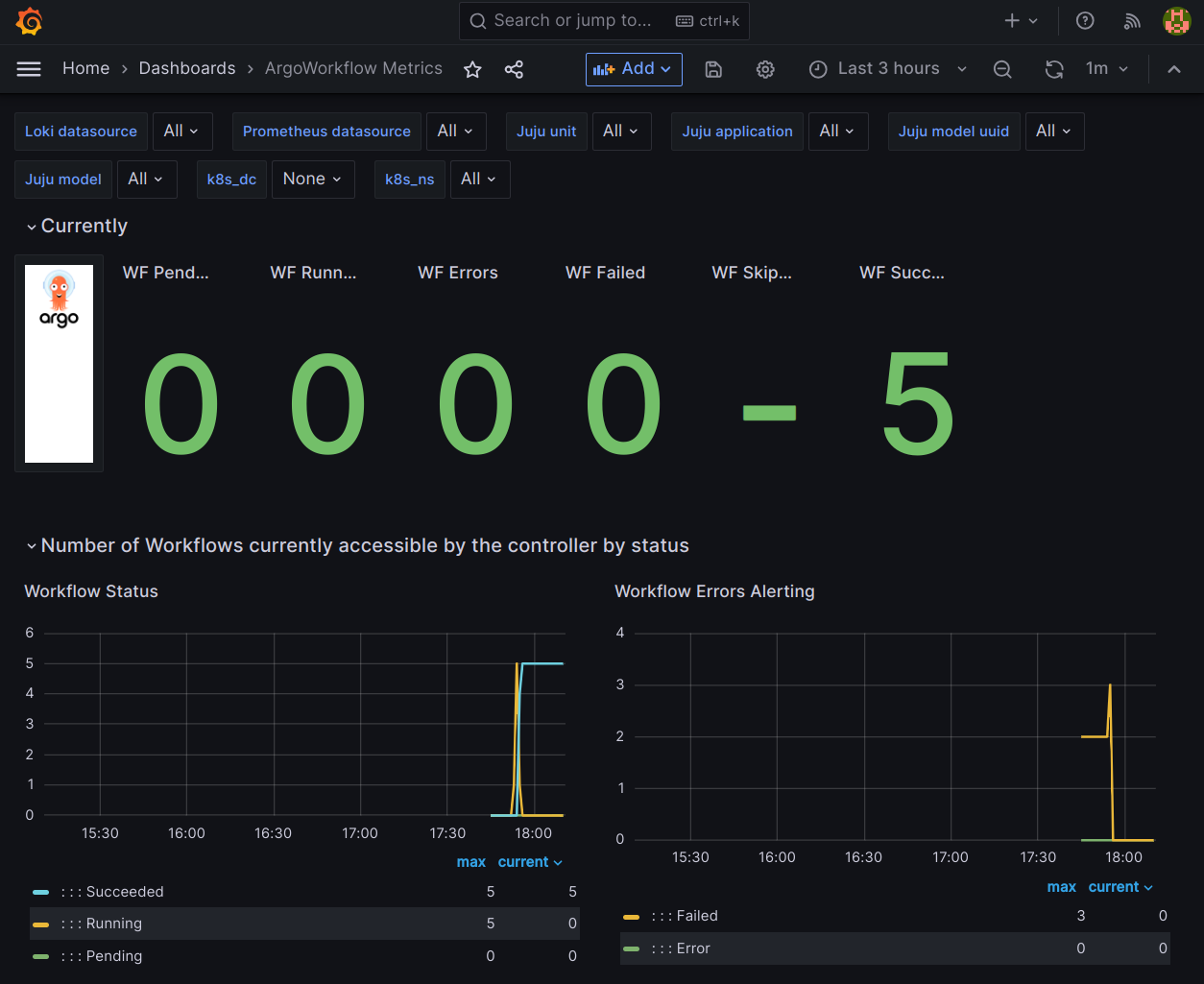The metrics from the Argo Workflow controller expose the status of Argo Workflow custom resources, including the following information: