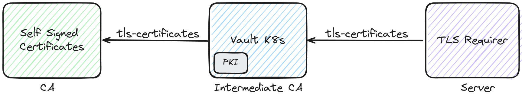 In this how-to guide, we will configure Vault to act as an intermediate Certificate Authority (CA) using Vault’s PKI secrets engine. Here self-signed-certificates will be the parent CA and tls-certificates-requirer will be the charm requesting a certificate to Vault.