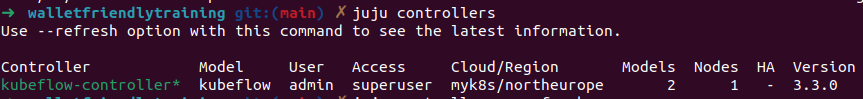 juju bootstrap myk8s kubeflow-controller