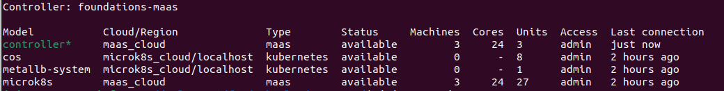 $ juju add-model -c foundations-maas openstack maas_cloud