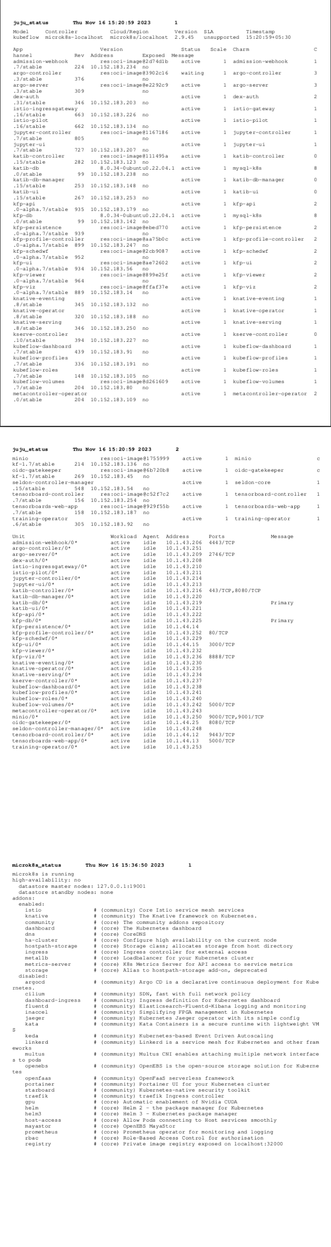 I have clubbed juju status and microk8s status into one merged file. Kindly, take a look.