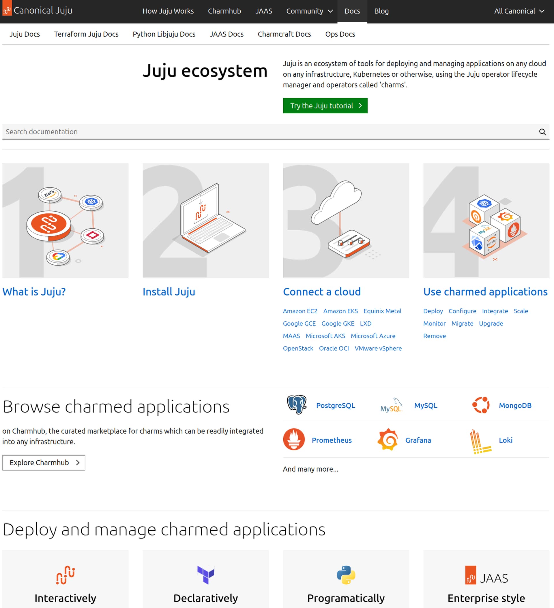 juju.is/docs is expanding to Juju, Terraform Provider, Python Libjuju, JAAS, Charmcraft and Ops.