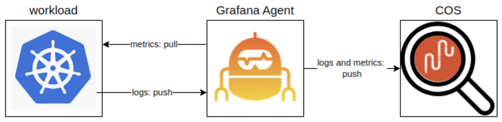 In the recommended deployment scenarios, a telemetry aggregator, such as grafana agent, is used to funnel logs and metrics to COS. In this case, grafana agent takes over the responsibility to push logs as well as metrics into COS: so it’s not required for the COS stack to be able to reach the grafana agent, but the agent must be able to reach the COS stack. The grafana agent needs to be able to reach the charms and workloads generating the telemetry, and the other way around.