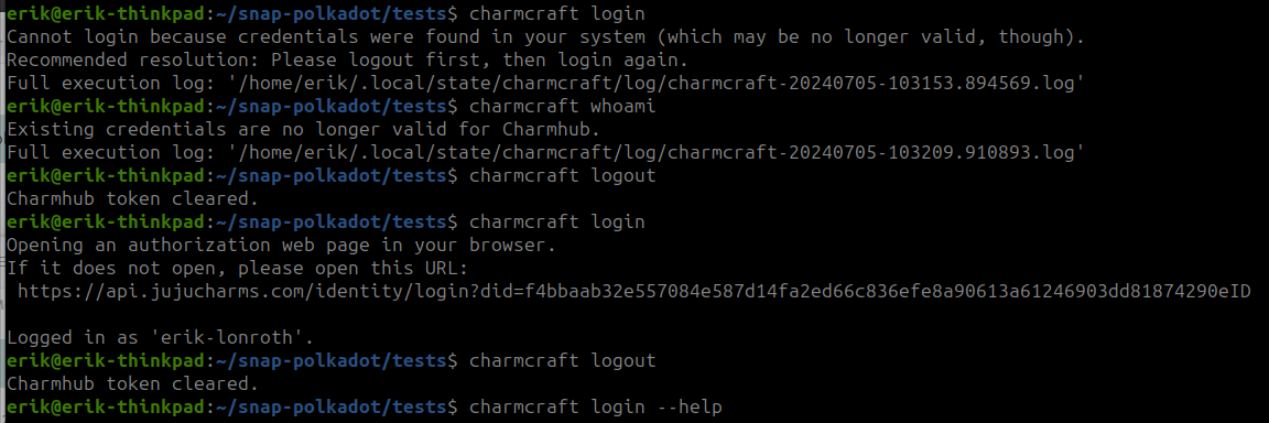 - Thou must log out from charmcraft. (charmcraft logout) or the beast will win.