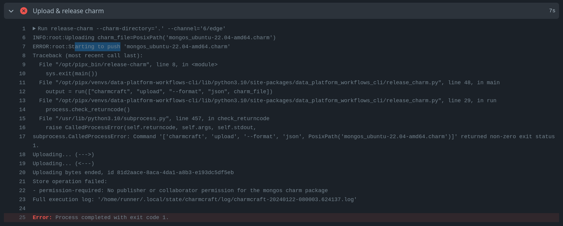 - permission-required: No publisher or collaborator permission for the mongos charm package