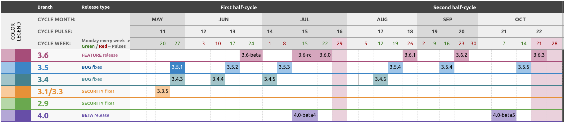 We will release a new minor version every 3 months, providing a regular cadence of incremental improvement every three months. Releases will happen on the last Thursday of January, April, July, and October of every year.