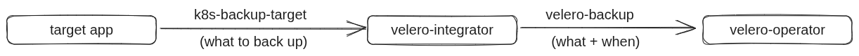 Velero Integrator sits between one or more target applications and a single Velero Operator: